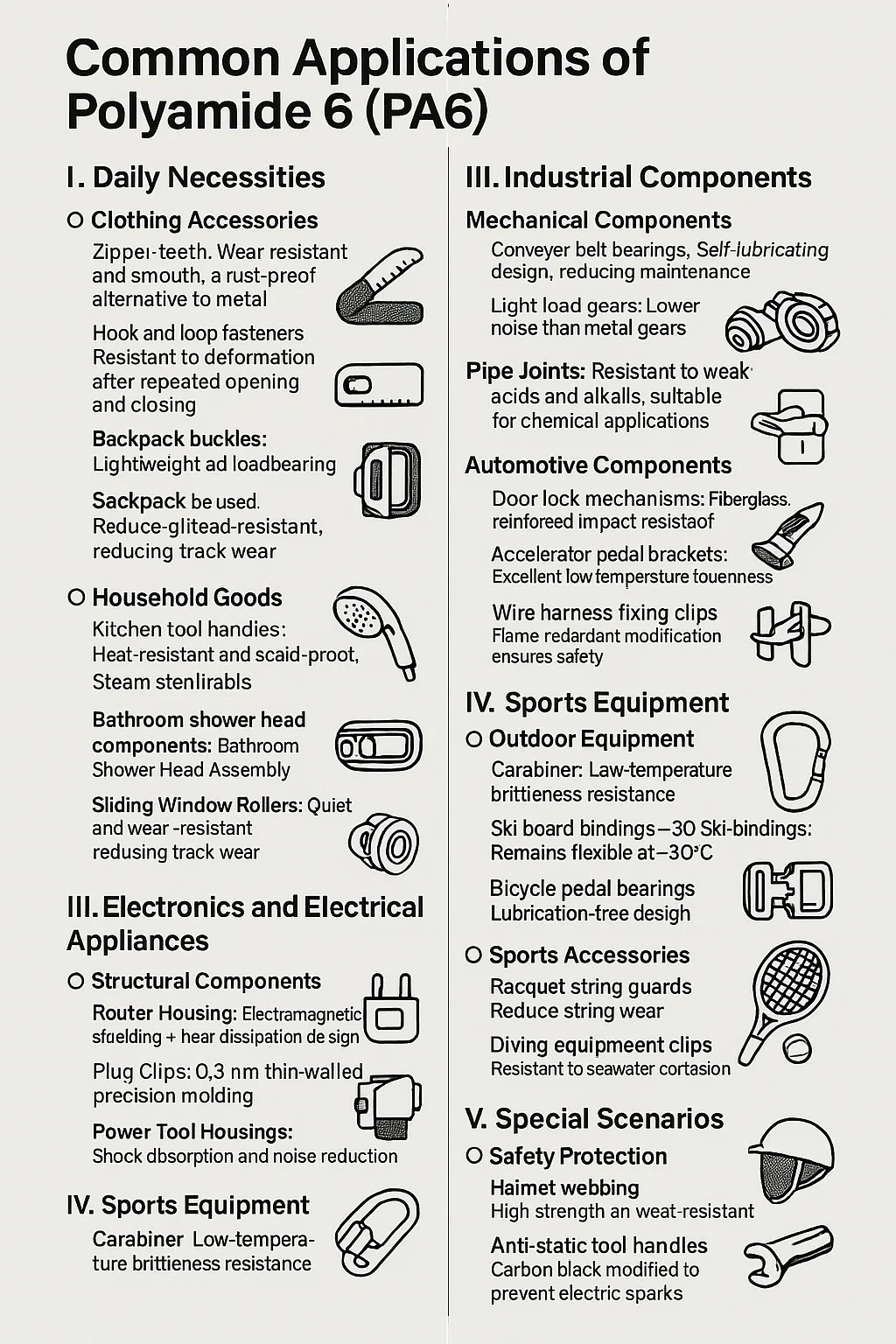 The following is an introduction to common applications of polyamide 6 (PA6):