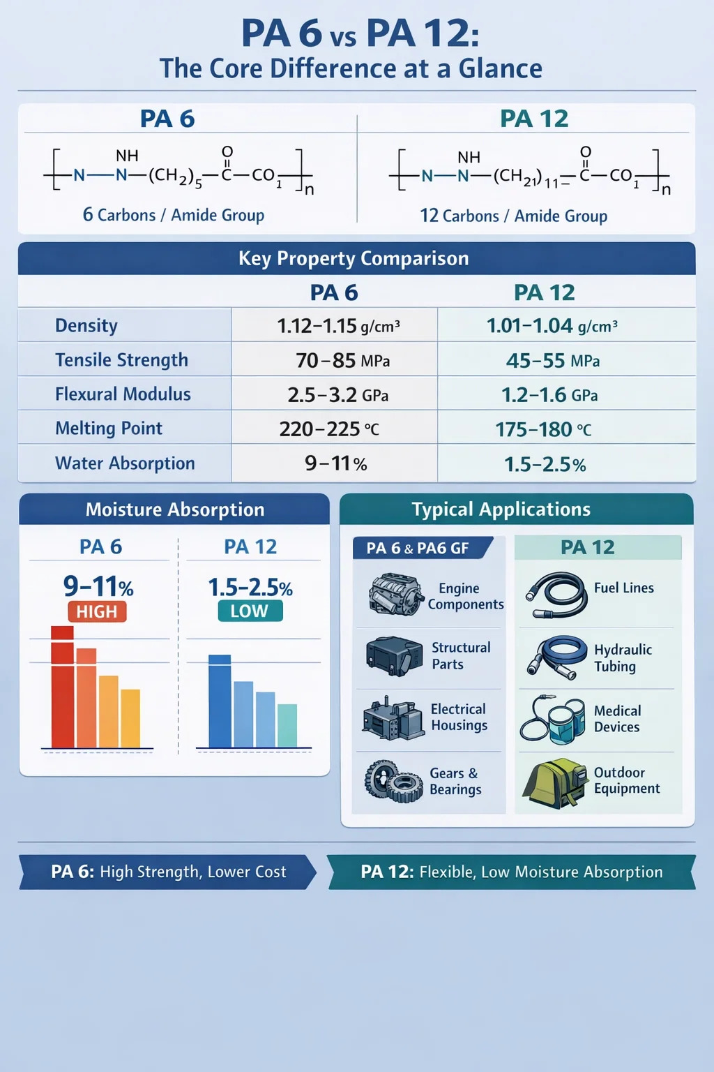 Key Property Comparison: PA 6 vs PA 12